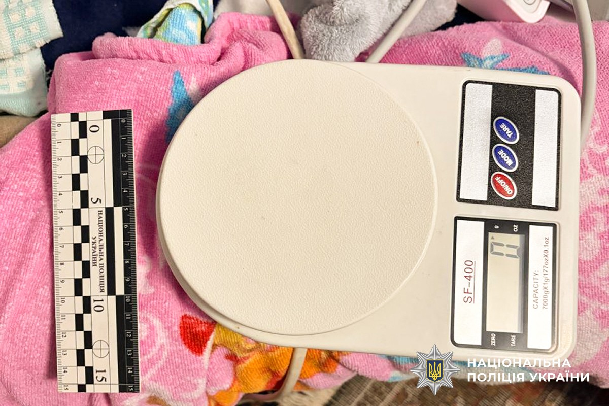 Під час санкціонованого обшуку за місцем проживання підозрюваної поліцейські вилучили електронні ваги, 15 тисяч гривень та близько 70 грамів порошкоподібної нарковмісної речовини — метадону (що, як зазначається, підтверджено експертним дослідженням).